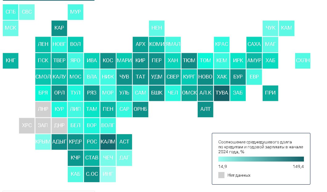 В числе лидеров рейтинга – регионы с минимальной закредитованностью – Чечня, Ингушетия и Крым . Наиболее закредитованное население в Тыве, Калмыкии и Тюменской области.