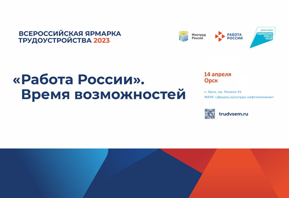 14 апреля в ДК нефтехимиков состоится ярмарка по трудоустройству, которая пройдет в рамках акции «Работа России. Время возможностей». Орчан и гостей города ждут на мероприятии с 11 до 14 часов.