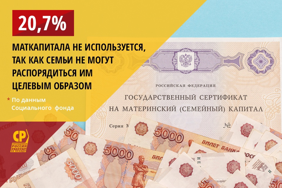 Согласно данным Социального фонда РФ, 20,7% маткапитала сегодня не используется, так как семьи не могут распорядиться им целевым образом.