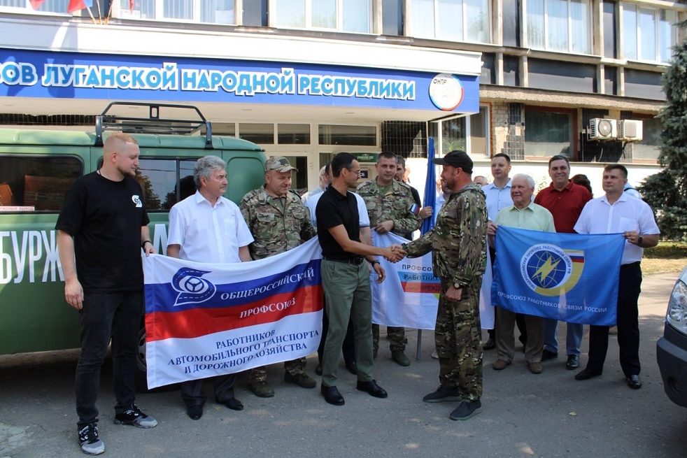 Профлидеры Оренбуржья преодолели 1 800 километров на двух профсоюзных автомобилях и приехали в Луганскую Народную Республику. УАЗ передали мобилизованному из Оренбуржья члену профсоюза. В коробках с гуманитарным грузом профсоюзные лидеры привезли одежду, перчатки, резиновые сапоги, влажные салфетки, воду, нескоропортящиеся продукты, медикаменты, водо- и ветроустойчивые спички, камуфляжные сети, коврики.
