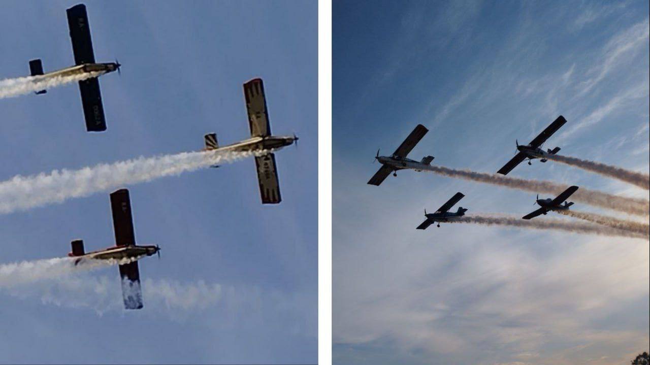Команды Уфимского учебно-методического центра малой авиации и аэродрома «Первушино» показали воздушную программу пилотажной группы на сверхлегких воздушных судах.