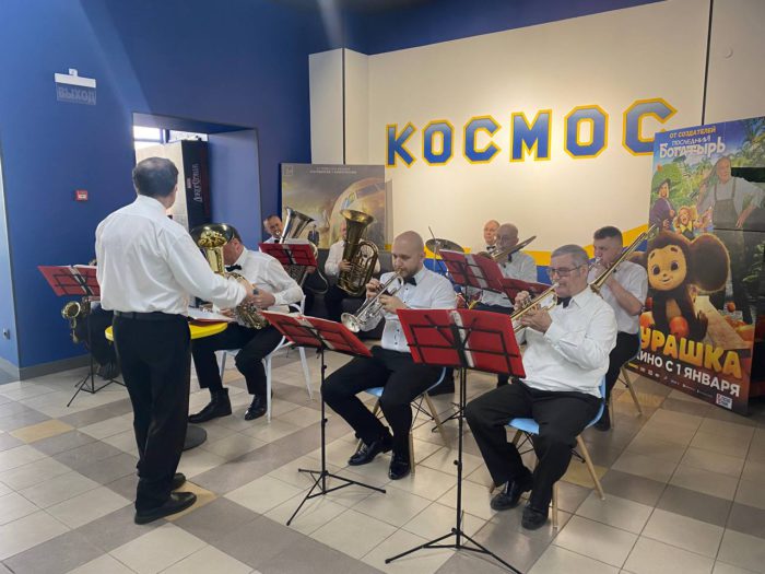 На большом экране гостьям праздника показали комедийный фильм. В фойе кинотеатра праздничное настроение создавал оркестр Культурного центра УМВД области.