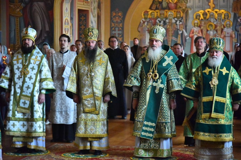 После Литургии архипастыри и сослужащее им духовенство совершили славление празднику Святого Духа.