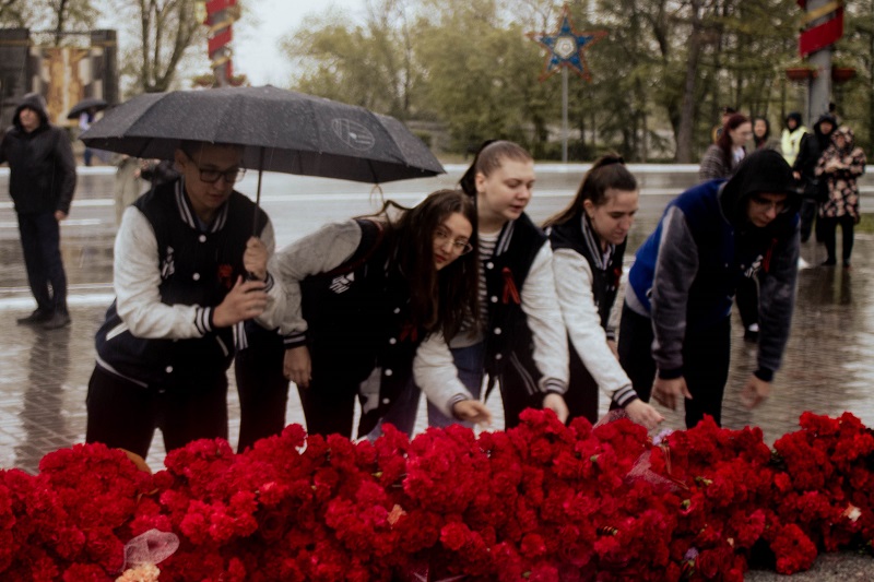 Сотрудники и студенты ОГПУ возложили цветы к Вечному огню в Оренбурге