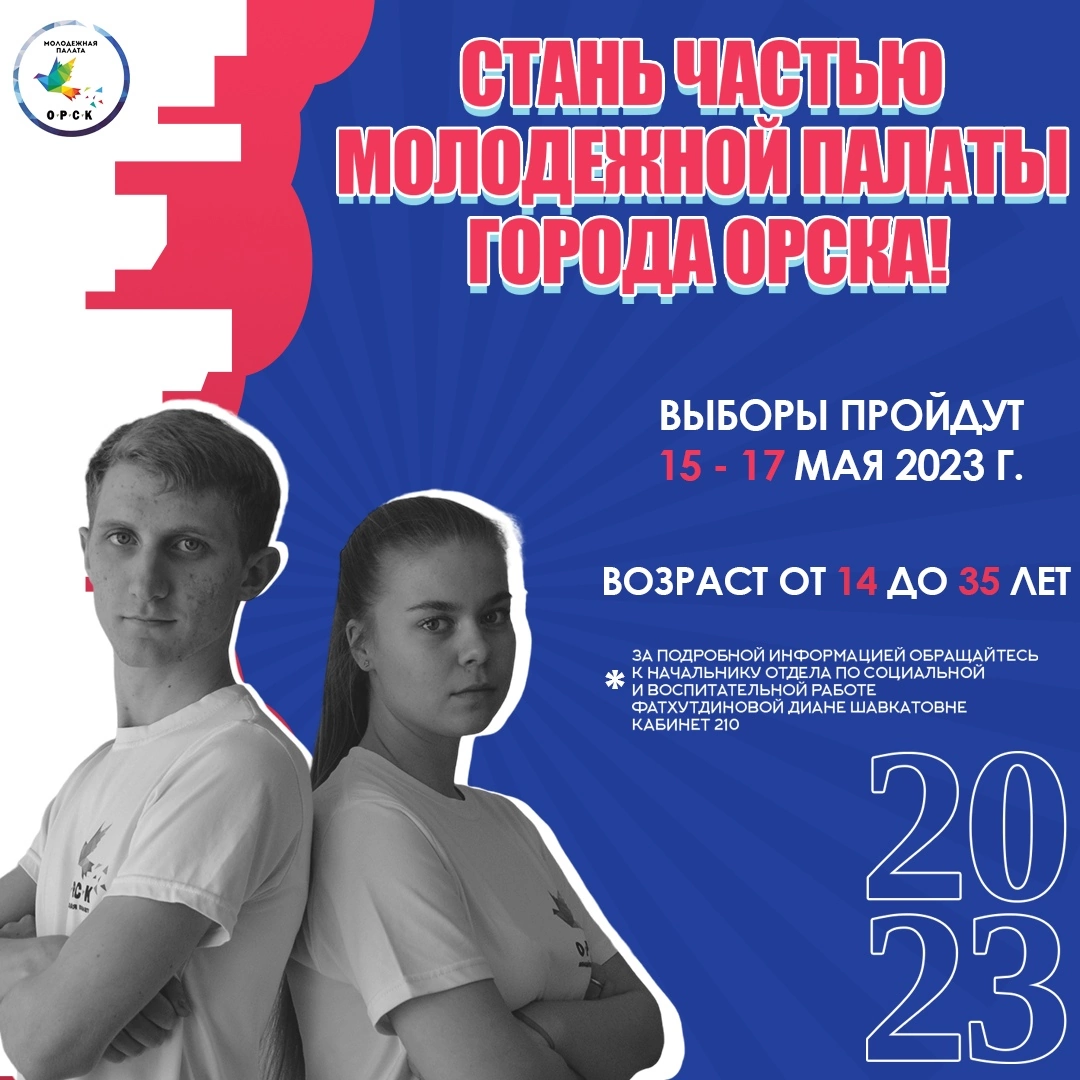 С 15 по 17 мая 2023 года пройдут выборы в Молодежную палату города Орска.