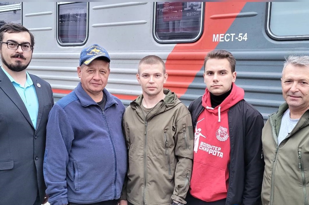 На вокзале волонтёров провожали замруководителя регионального отделения Волонтерской роты Сергей Чубаров и руководитель юношеской военно-патриотической школы «Юный космонавт» Сергей Обрезанов.