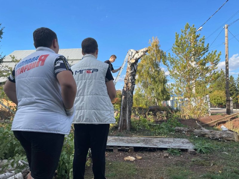 Гвардейцы помогли Марье Семеновне по хозяйству: срубили дерево, которое вот-вот грозилось свалиться, создавая опасную для жизни женщины ситуацию, затем очистили придомовую территорию от веток и листьев.