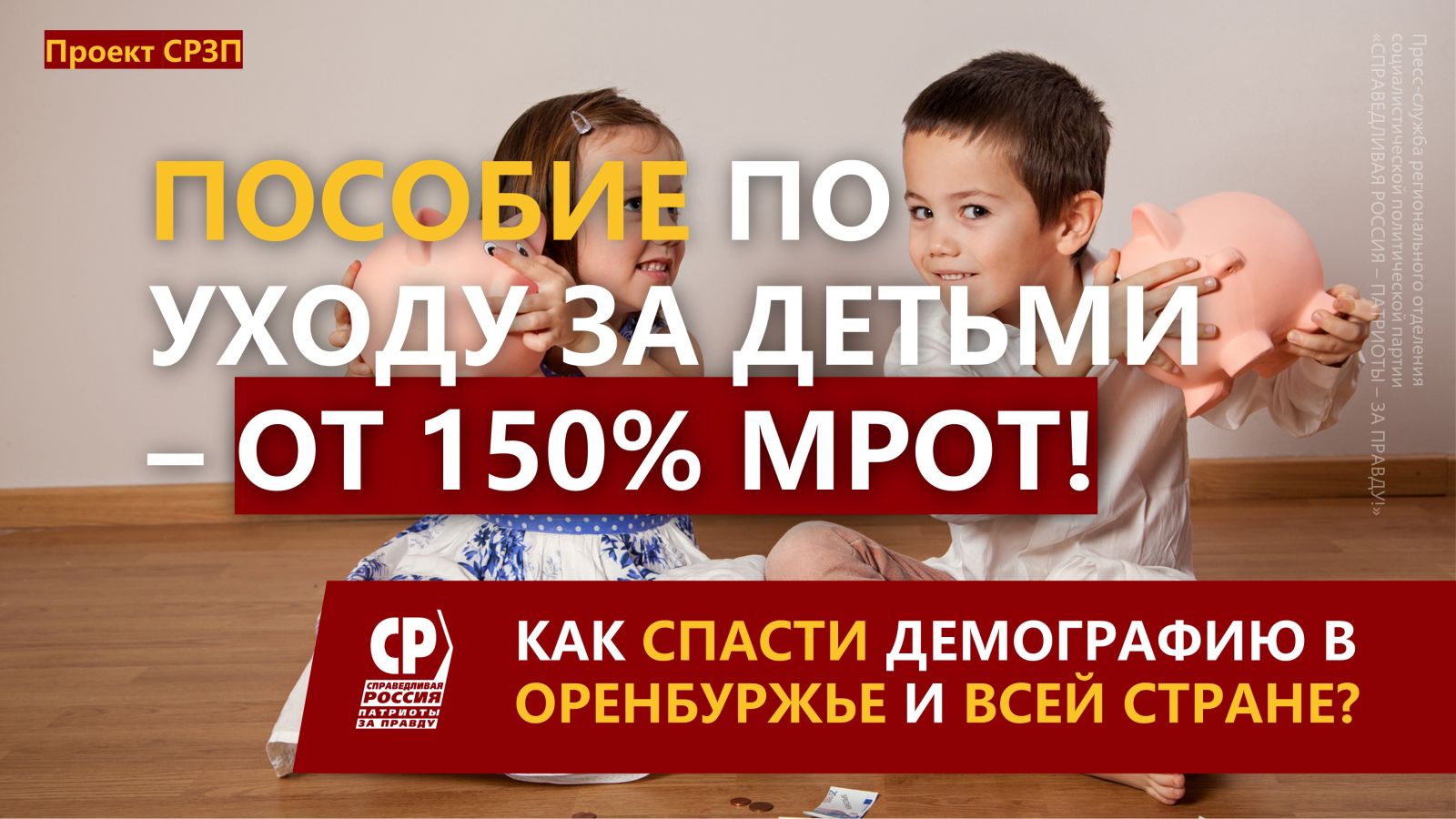 Для ощутимого повышения уровня рождаемости в стране необходимо создание системы поддержки материнства и детства. Недавно руководство нашей партии направило на заключение в Правительство России законопроект о поддержке семей с детьми. Мы предлагаем: