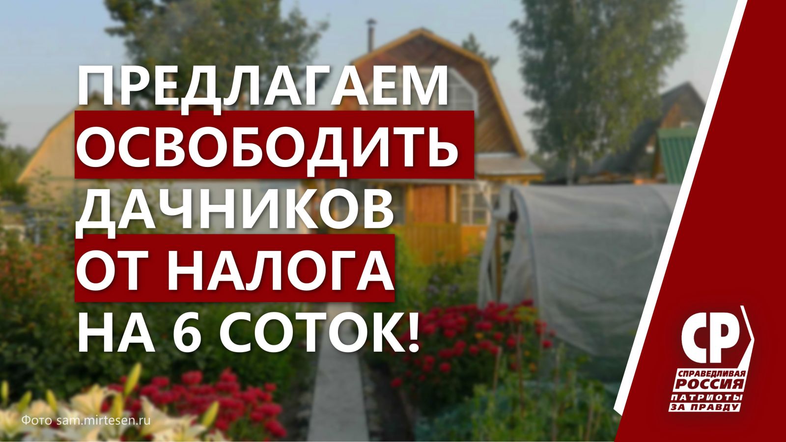 Предлагаем освободить дачников от налога на 6 соток, снизить цену электроэнергии и подвести коммуникации!