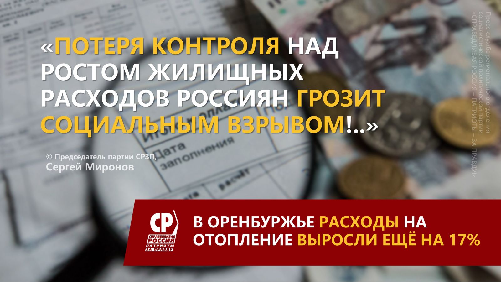 Сегодня партия СРЗП вынуждена отметить: при попустительстве Правительства в регионах случилась просто "вакханалия жилищной-коммунальной инфляции" – цены растут невероятными темпами,