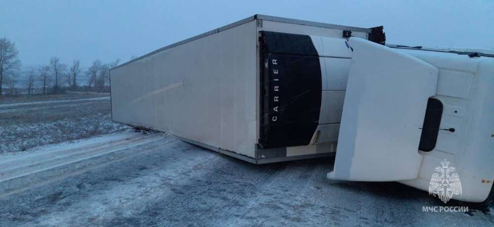 На трассе в Переволоцком районе перевернулся большегруз