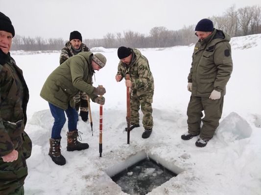 В Оренбургской области пробурили лунки и прорезали майны на озере, чтобы спасти рыбу от кислородного голодания