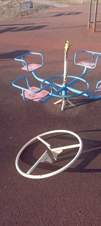 Неизвестные сломали качели, руль на карусели, детский стульчик, испортили фигурный столик.