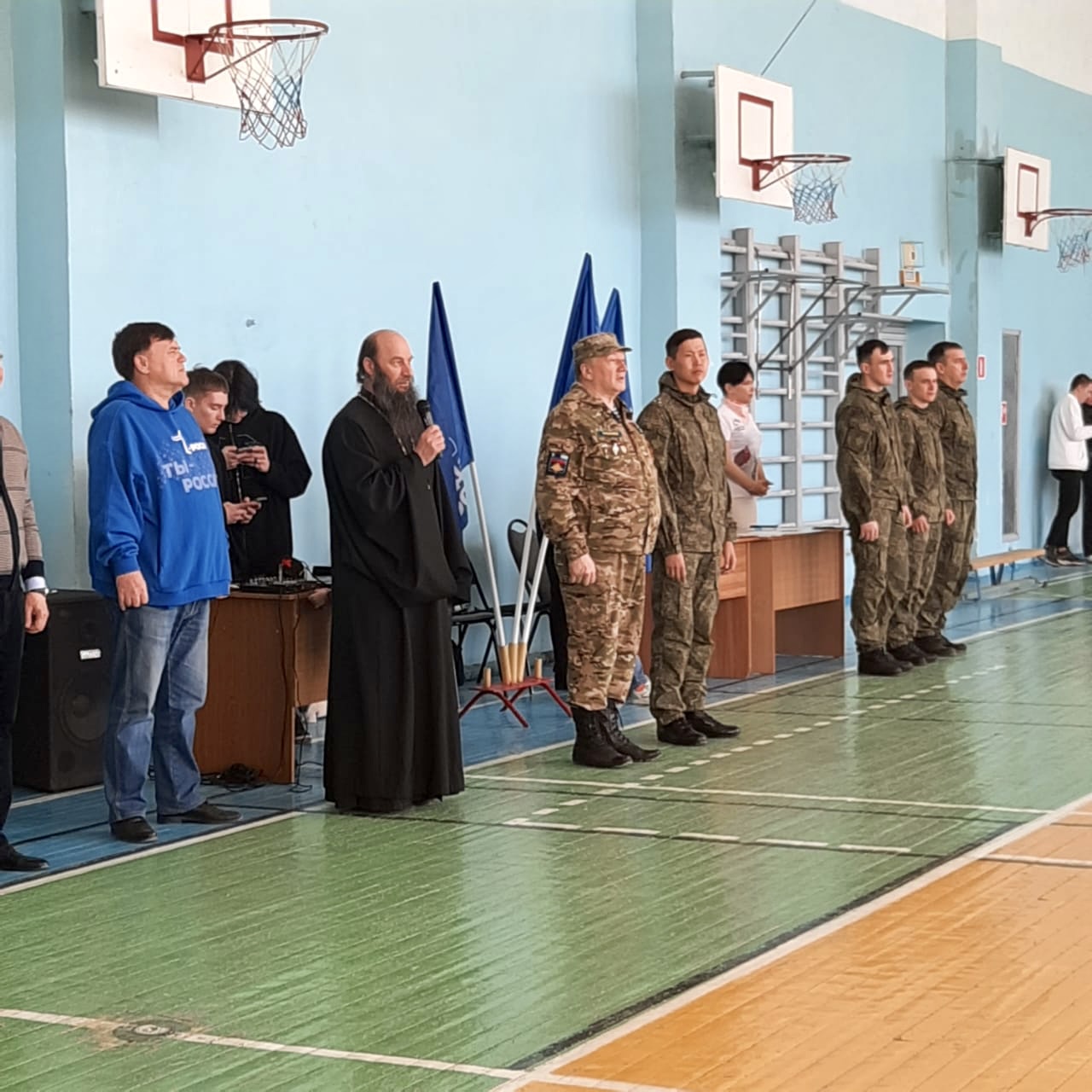 В эстафете также приняла участие команда из семи учеников Православной гимназии во имя святых Царственных страстотерпцев при приходе Преображения Господня г. Орска. Гимназисты исполнили гимн Российской Федерации перед началом соревнований.
