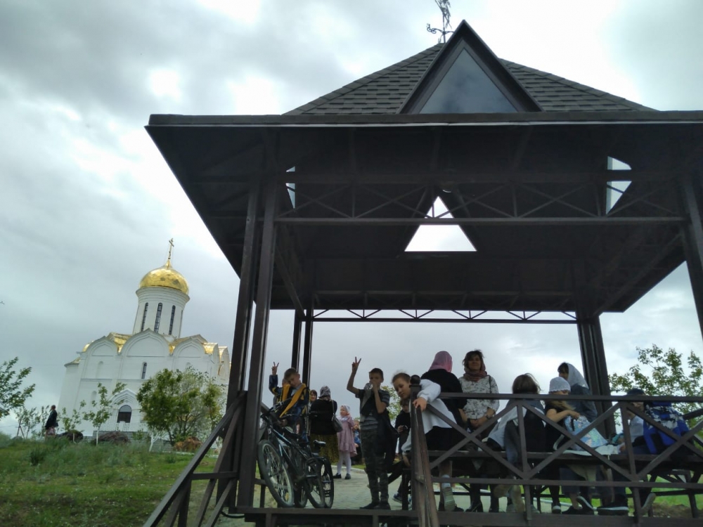 После Литургии монахиня Тамара, в доступной форме, провела для учащихся воскресной школы и некоторых родителей, которые тоже приехали в монастырь на своих машинах, интересную экскурсию по территории монастыря. Участники поездки познакомились с историей создания монастыря, увидели его внутреннее убранство и архитектуру, услышали увлекательные истории о святых подвижниках (святой Марии Египетской, св. Сергия Радонежского, св. Гавриила Угребадзе и других), в честь которых построены церкви на территории монастыря, приложились к святыням, погуляли по цветущему фруктовому саду. Также побывали в иконописной мастерской. Пообедали в гостеприимной трапезной и отведали вкусной выпечки из монастырской пекарни с душистым травяным чаем.