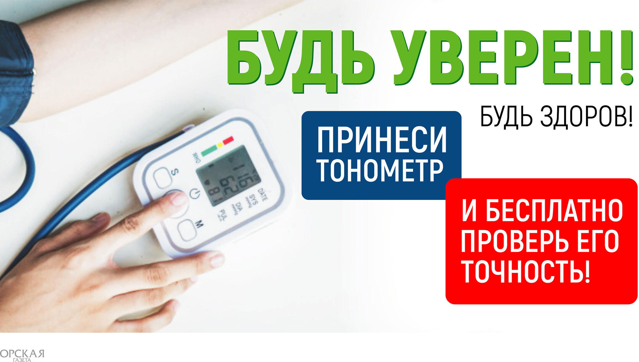 С 5 по 7 апреля в Орске, как по всей Оренбургской области проходит акция «Будь уверен! Будь здоров!». В ее рамках можно бесплатно проверить домашний тонометр.