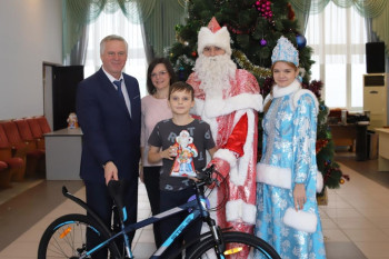 Тимофею из Соловьевки также вручили велосипед, исполнив его новогоднее желание. Тимофей очень любит спорт, играет в школьной футбольной команде, успешно прошёл первый этап сдачи нормативов ГТО.