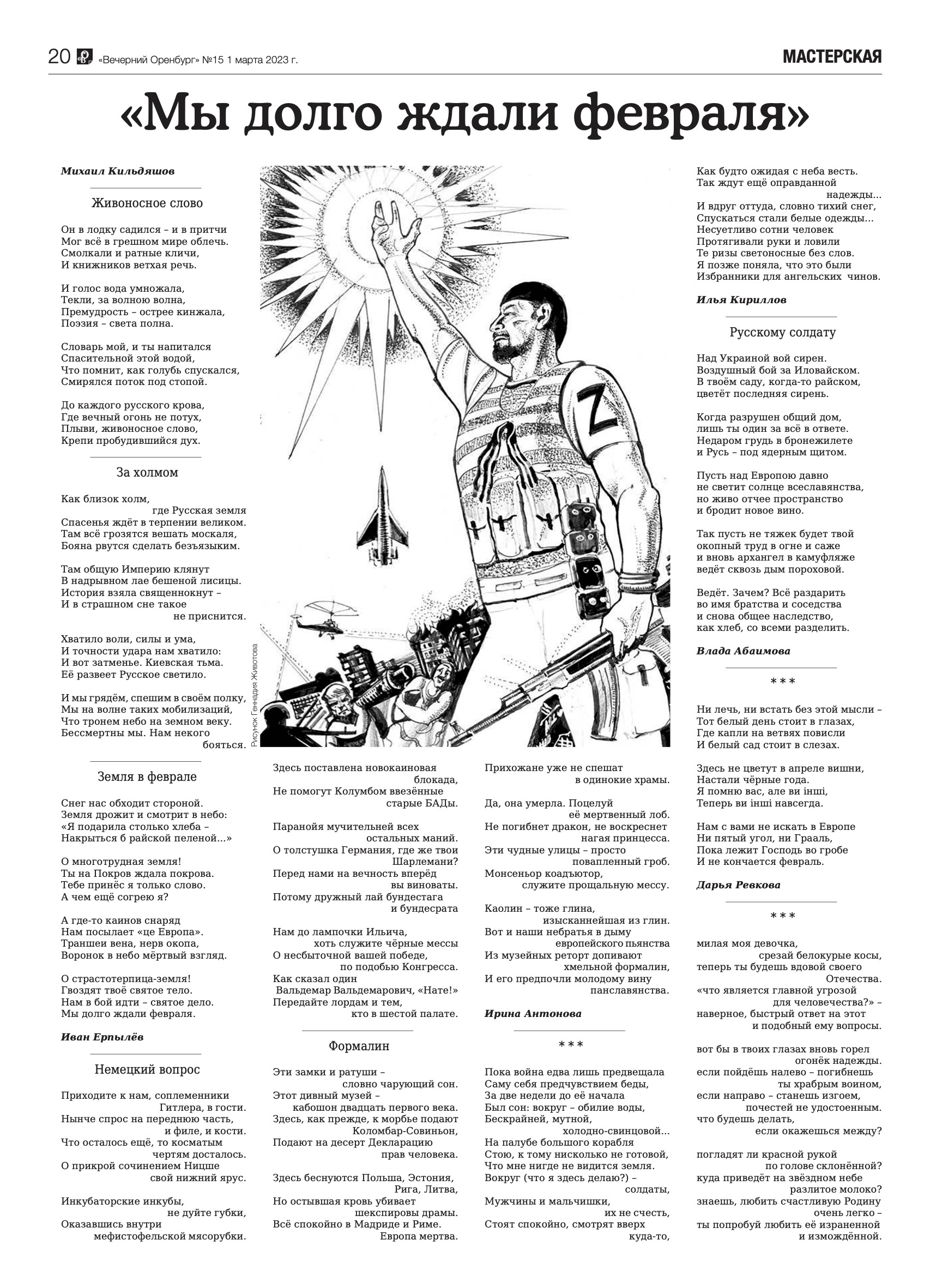 В газете "Вечерний Оренбург" опубликована подборка стихотворений оренбургских поэтов, посвящённая годовщине начала специальной военной операции.